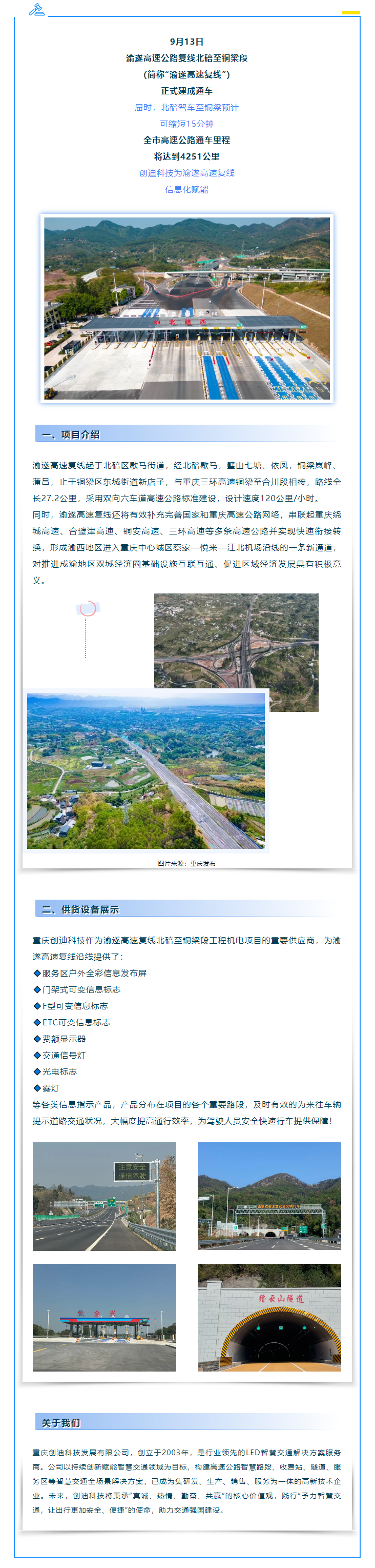 重慶創(chuàng)迪科技助力丨渝遂高速?gòu)?fù)線北碚至銅梁段項(xiàng)目建成通車!.